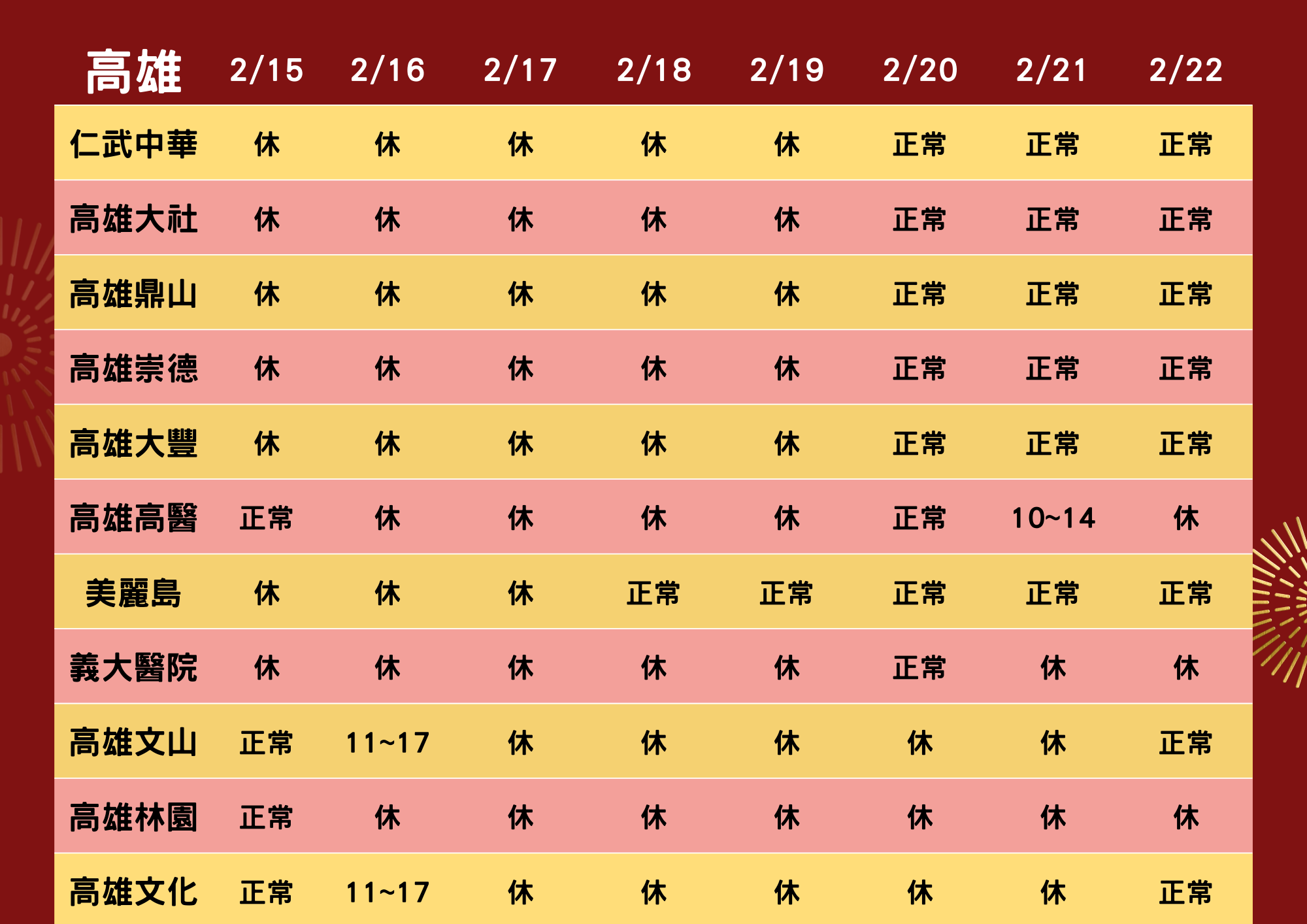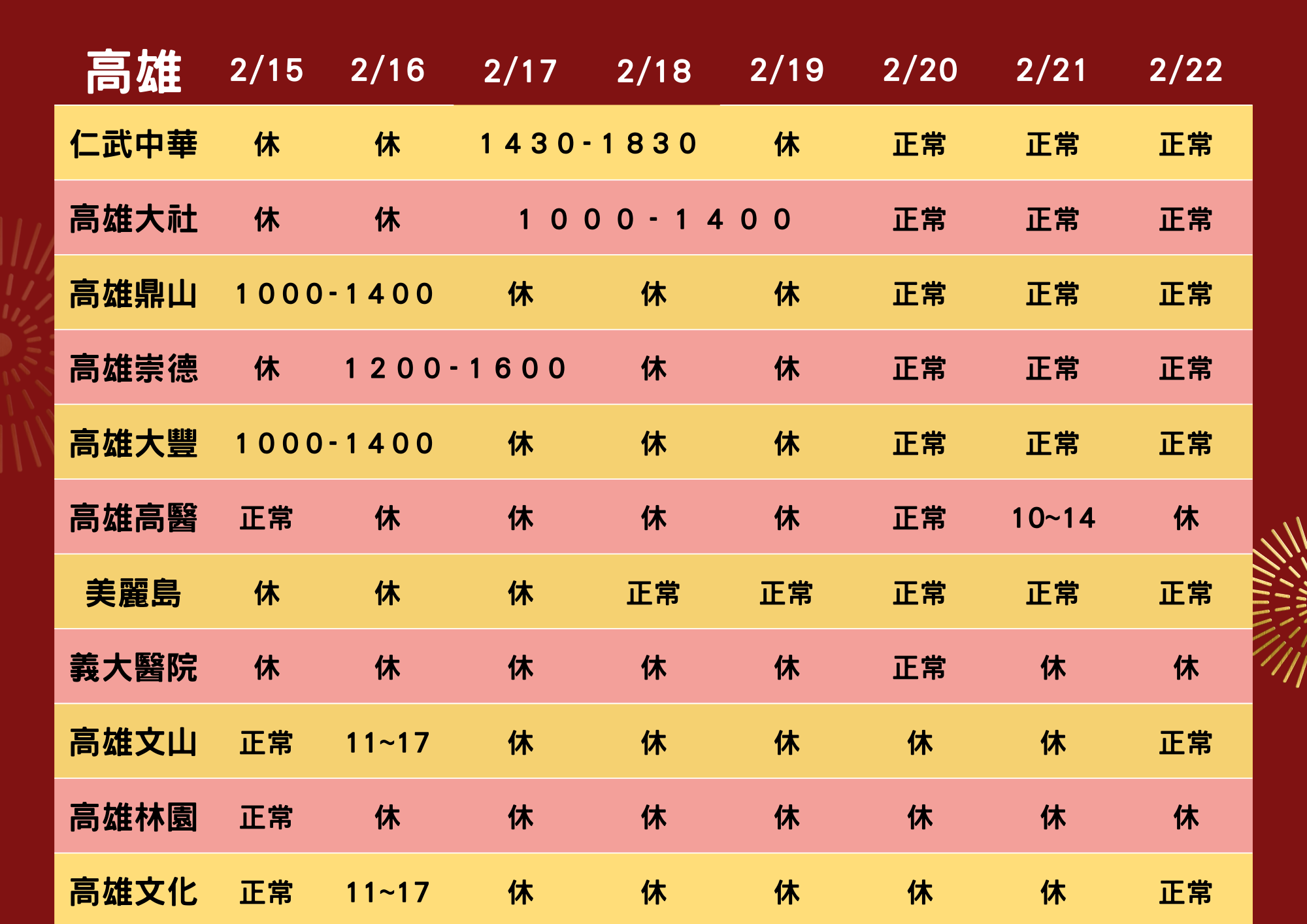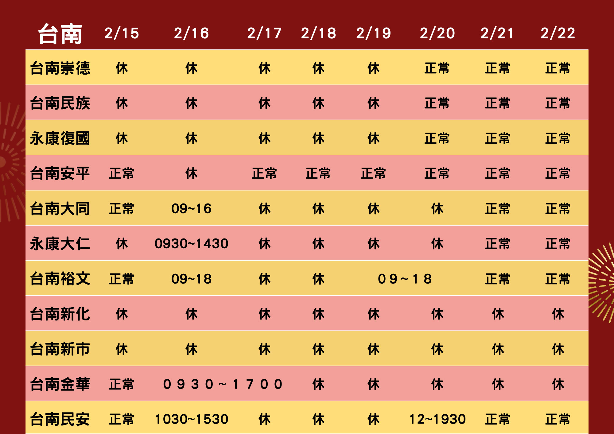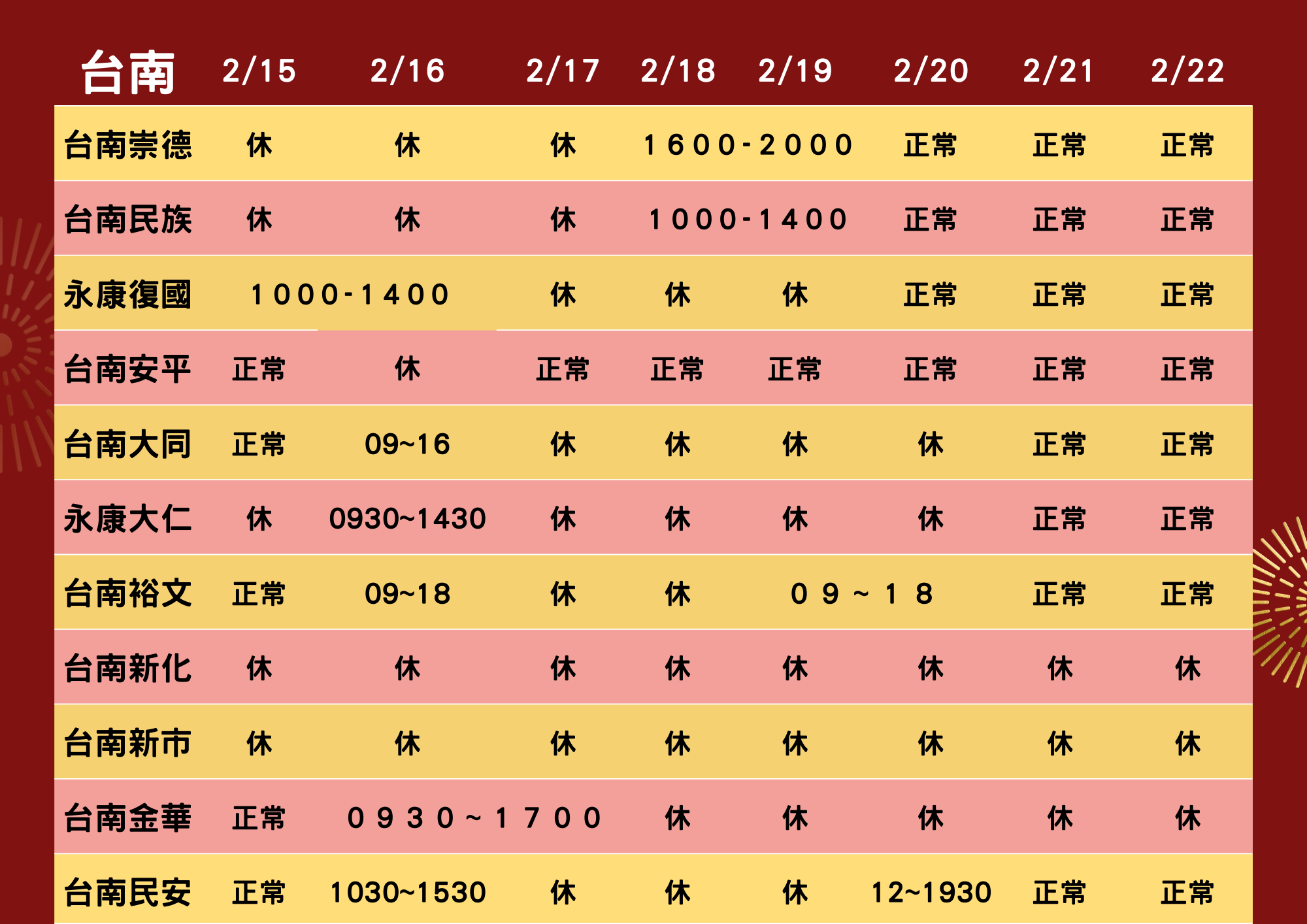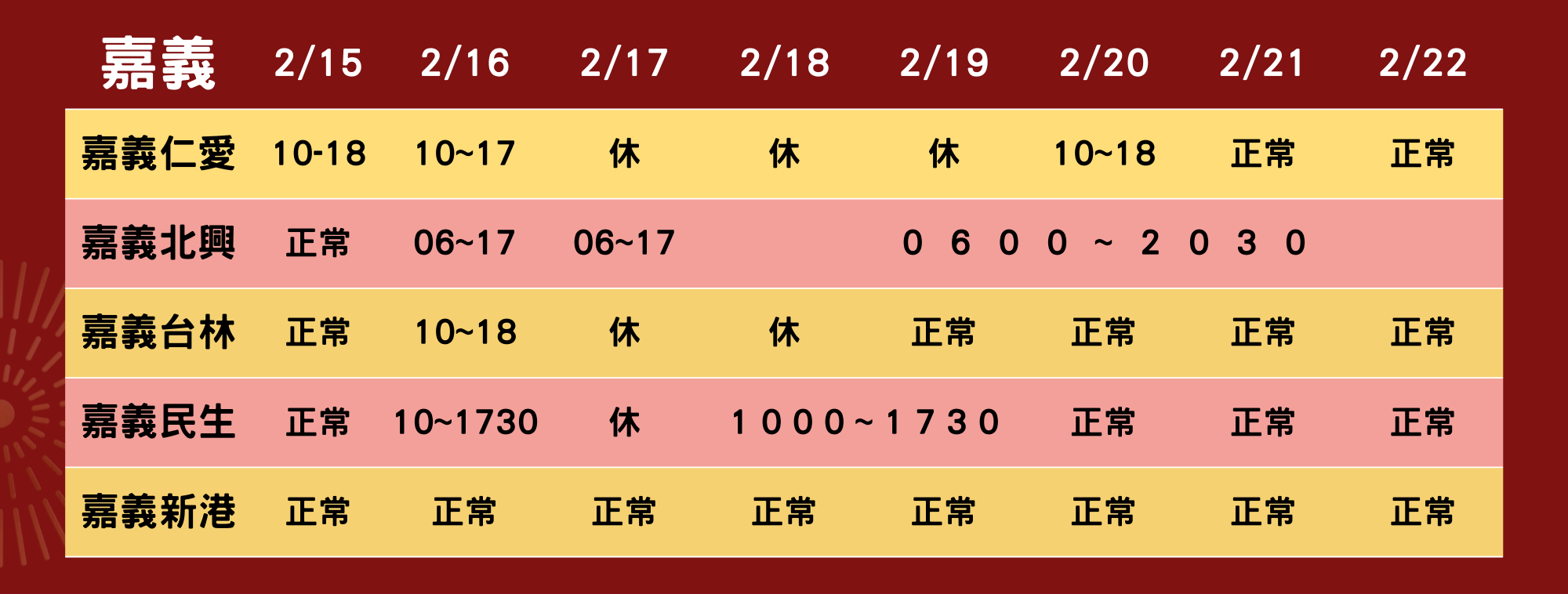 2026春節營業時間
